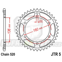 Řetězová rozeta 45 zubů, řetěz 520. Pokud se jedná o zinkovanou rozetu může mít na svém povrchu známky oxidace. Na zinku např. tzv.“mapy“ z důvodu dlouhodobého skladování ve vlhčím prostředí. Jedná se o lehkou kosmetickou vadu, která používáním taktéž nastane. Nemá žádný vliv na funkčnost. Komisní prodej.