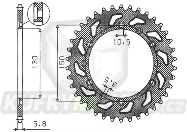 Řetězová rozeta 47 zubů, řetěz 520. Pokud se jedná o zinkovanou rozetu může mít na svém povrchu známky oxidace. Na zinku např. tzv.“mapy“ z důvodu dlouhodobého skladování ve vlhčím prostředí. Jedná se o lehkou kosmetickou vadu, která používáním taktéž nastane. Nemá žádný vliv na funkčnost. Komisní prodej.