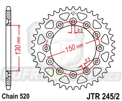 Řetězová rozeta 43 zubů, řetěz 520. Pokud se jedná o zinkovanou rozetu může mít na svém povrchu známky oxidace. Na zinku např. tzv.“mapy“ z důvodu dlouhodobého skladování ve vlhčím prostředí. Jedná se o lehkou kosmetickou vadu, která používáním taktéž nastane. Nemá žádný vliv na funkčnost. Komisní prodej.