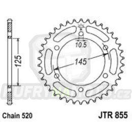 Řetězová rozeta 46 zubů, řetěz 520. Pokud se jedná o zinkovanou rozetu může mít na svém povrchu známky oxidace. Na zinku např. tzv.“mapy“ z důvodu dlouhodobého skladování ve vlhčím prostředí. Jedná se o lehkou kosmetickou vadu, která používáním taktéž nastane. Nemá žádný vliv na funkčnost. Komisní prodej.