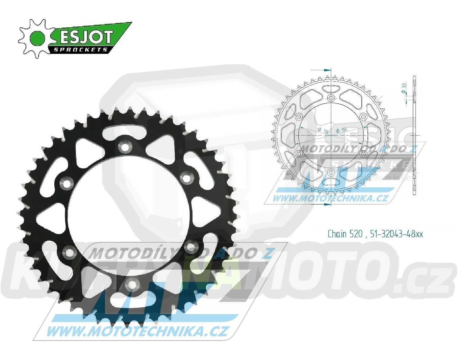 Rozeta řetězová (převodník) Dural 0822-48zubů ESJOT 51-32043-48SB - barva černá - Husqvarna CR+WR+TC+TE+WRE+TXC+SM+SMR + Suzuki DR350+DRZ400 + Cagiva WMX + Gas-Gas EC+ECF+XC+Ranger + Beta RR + Sherco SE+SEF + Rieju MR+XC+Ranger